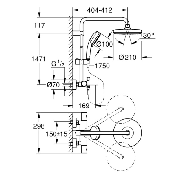 Размер верхнего душа см 21