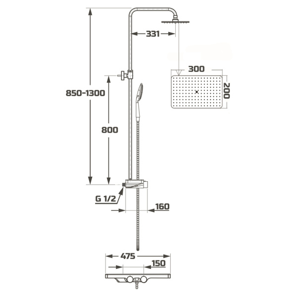 3. Штанга. Опора, фиксирующаяся на стене, внутри которой чаще всего проходит гибкий шланг. В верхней ее точке находится верхний душ, подающий воду вертикально. Его положение не меняется практически ни в одной из моделей. Здесь же размещен кронштейн для лейки.