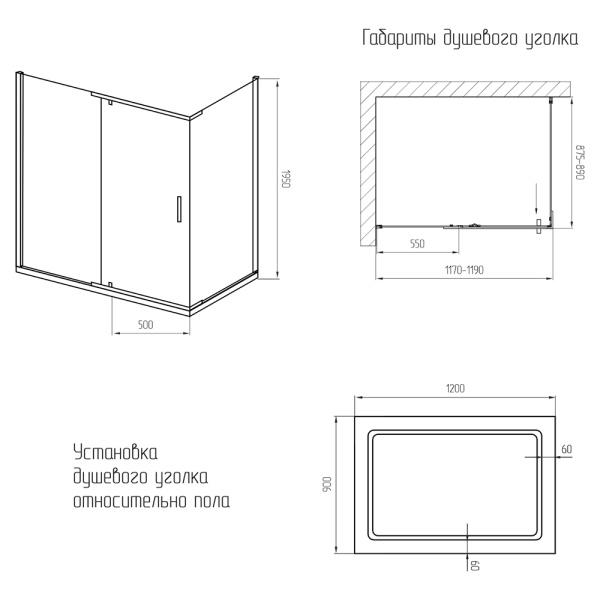Эти ограждения подойдут для более просторных помещений. Распашные двери обеспечивают удобный доступ и могут открываться как внутрь, так и наружу, что позволяет выбирать оптимальный вариант установки.
