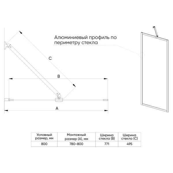 Шторка на ванну BelBagno Uno UNO-V-1-80/150-C-Cr 80 профиль хром, прозрачное стекло