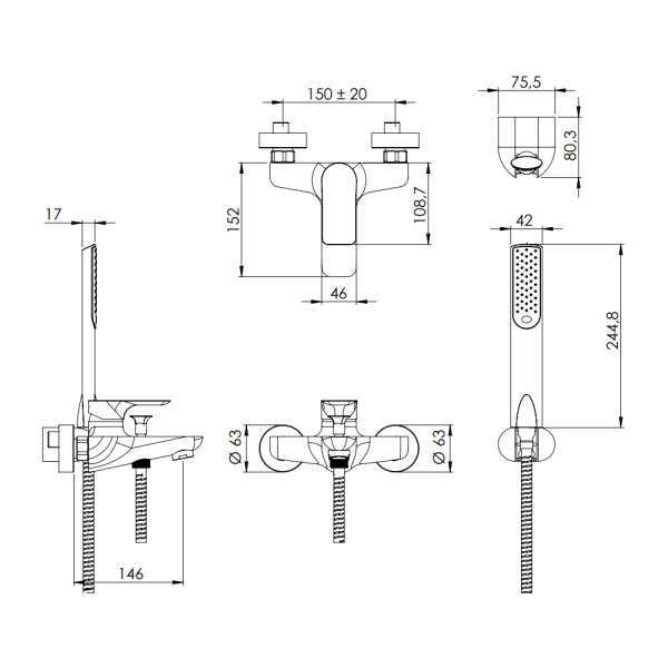 Комплект Д/с ЗОЛОТО см-ль д/ван + колонна Г-обр + верх душ MIGLIORE