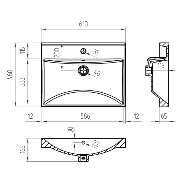 - Врезные. Монтаж в отверстие с полным скрытием раковины под столешницей.