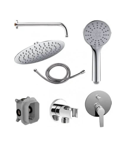 Душевая лейка; Шланговое подключение; Душевой шланг; Смеситель; Скрытая монтажная часть; Верхний душ; Кронштейн для верхнего душа
