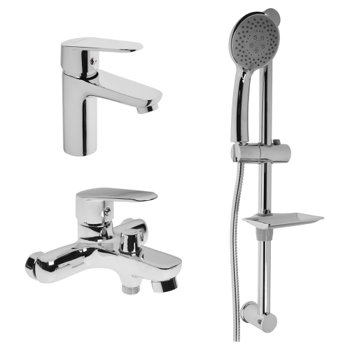 смеситель для ванны; смеситель для раковины; душевая штанга; комплект эксцентриков; комплект гибкой подводки; шланг; комплект креплений; ручная лейка; инструкция.