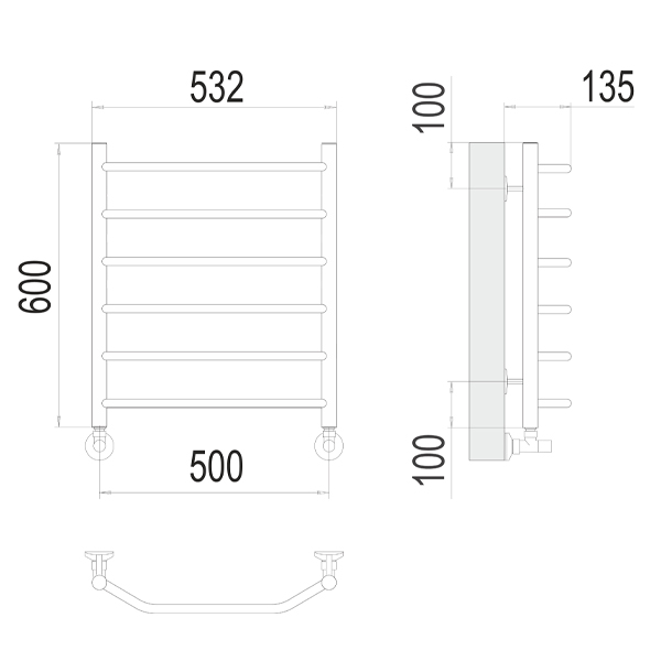 Полотенцесушитель водяной Terminus Виктория П6 50x60 черный матовый