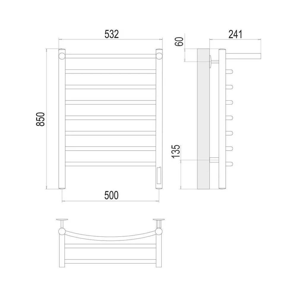 ПС Классик П8 с полкой 500*850 quick touch 9005 черн. мат ЭЛЕКТРИКА TERMINUS