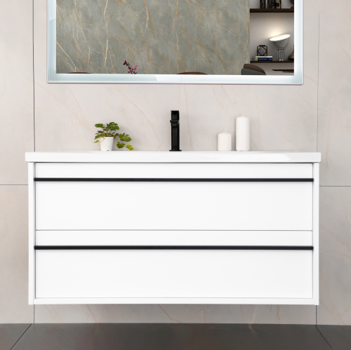 Тумба с раковиной AVS Графика 100 белая матовая с черными ручками