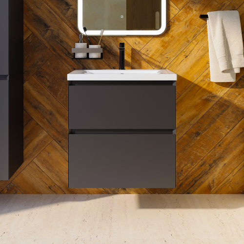 Тумба с раковиной AVS Гармония 60 антрацит матовая (раковина 01 белая глянцевая)