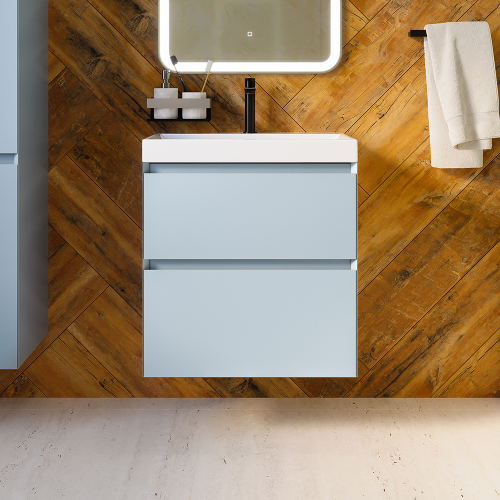 Тумба с раковиной AVS Гармония 60 платина матовая (раковина 02 белая глянцевая)
