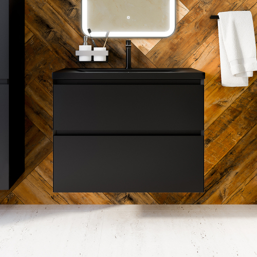 Тумба с раковиной AVS Гармония 80 черная матовая (раковина 01 черная матовая)
