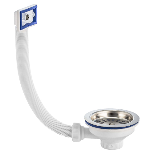 /Выпуск для мойки с плоской нержавеющей чашкой 114 мм и прямоугольным переливом Элит Virplast