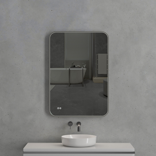 Зеркало из серебра без меди толщиной 5 мм с защитной пленкой сзади. Три цветовые температуры. Водонепроницаемость IP44. Мощность нагрева: 38 Вт. Мощность подсветки: 17 Вт.