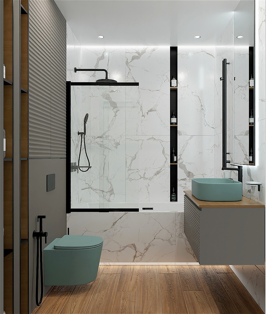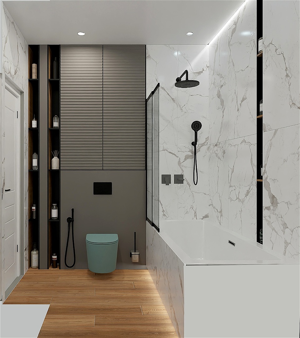 В этом 3D проекте ванной комнаты мы стремились создать пространство, которое сочетает в себе современный стиль и уют.