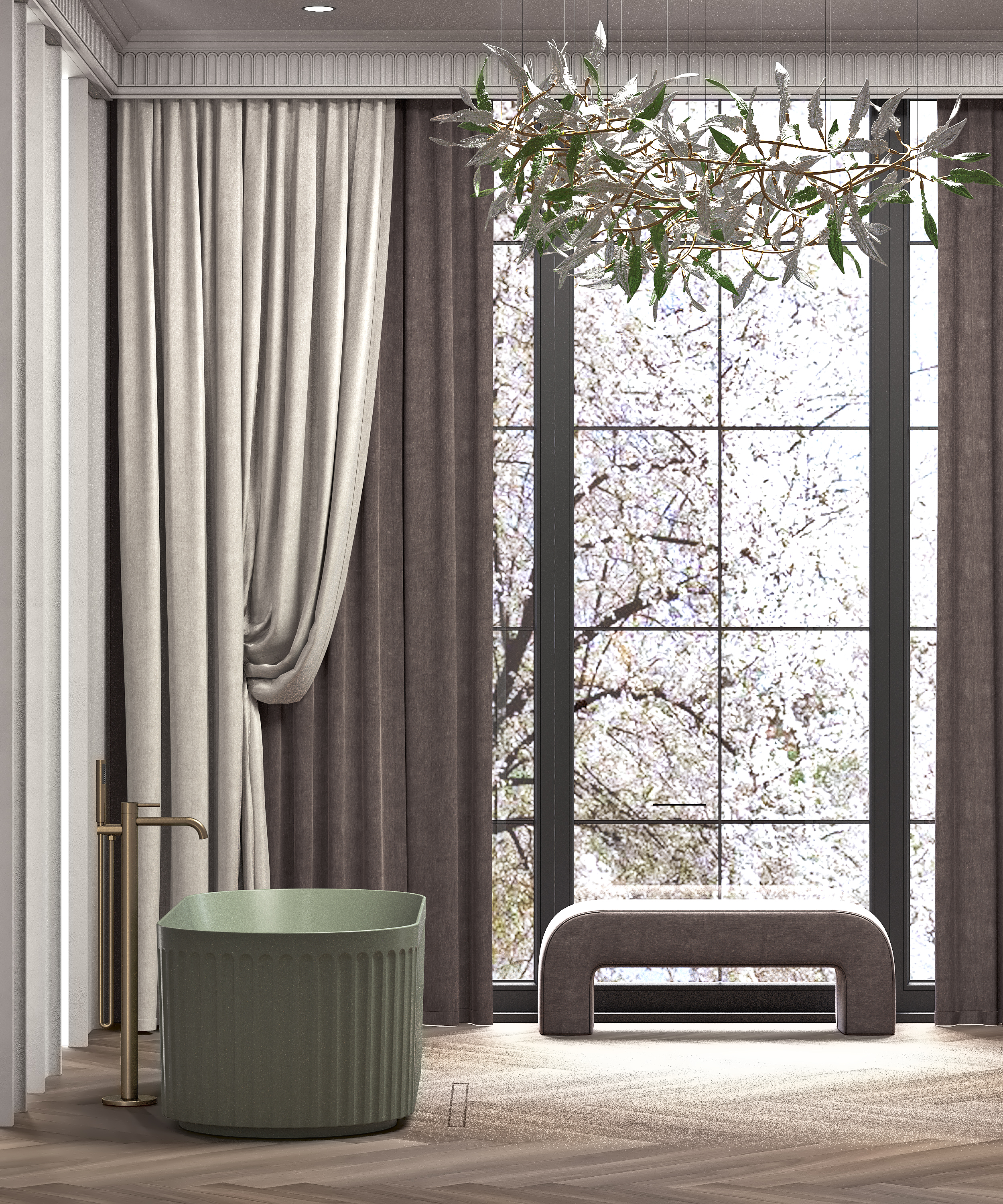 В такой ванной комнате можно легко отключиться от внешнего мира и погрузиться в особую атмосферу.