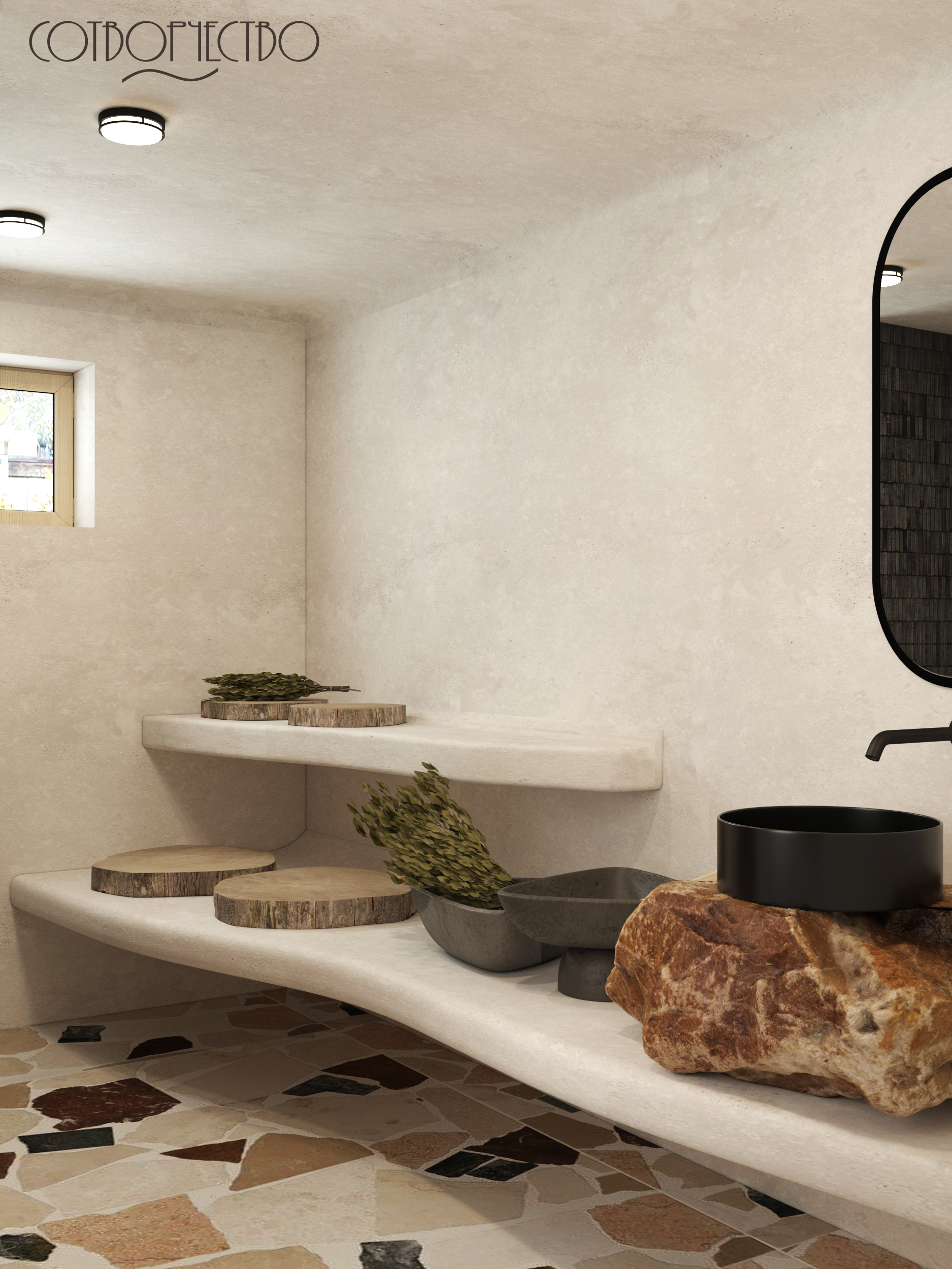 Наш новый проект, наполненный семейными традициями. Объект располагается в Карачаево- Черкесской республике, в ст. Зеленчукская. Это очень важная часть дома, которую необходимо было продумать по функциональному назначению (душ, зона парилки, зона раковины). Пространство наполнено природными мотивами, тактильно приятные материалы, наложение фактур, и, терракотовые акценты, ведь регион славится своей величественной Природой горами, чистыми лесами и озерами. Это вдохновило нас на создание дизайна, а так же с этим проектом нам помог Аквамир!