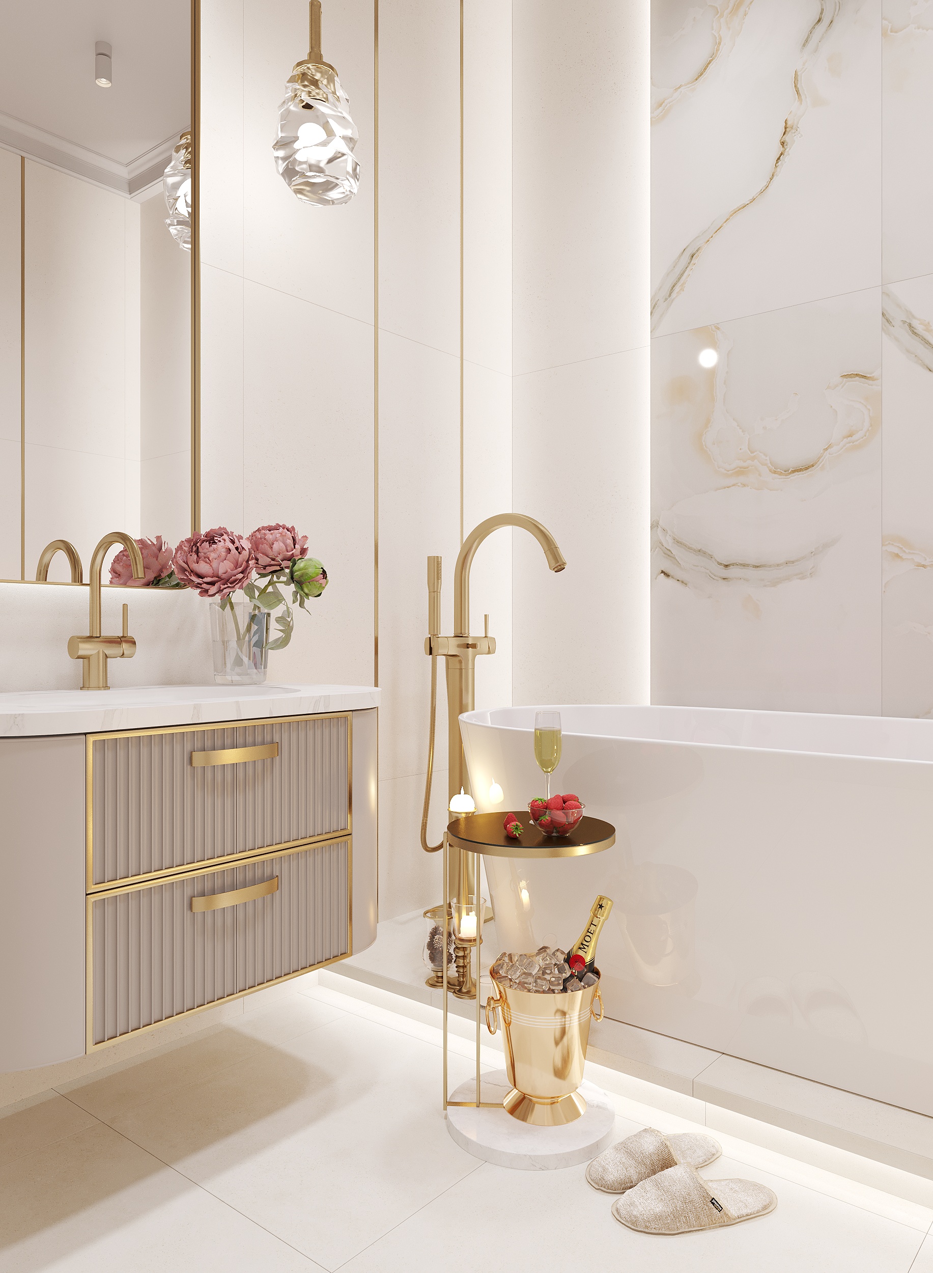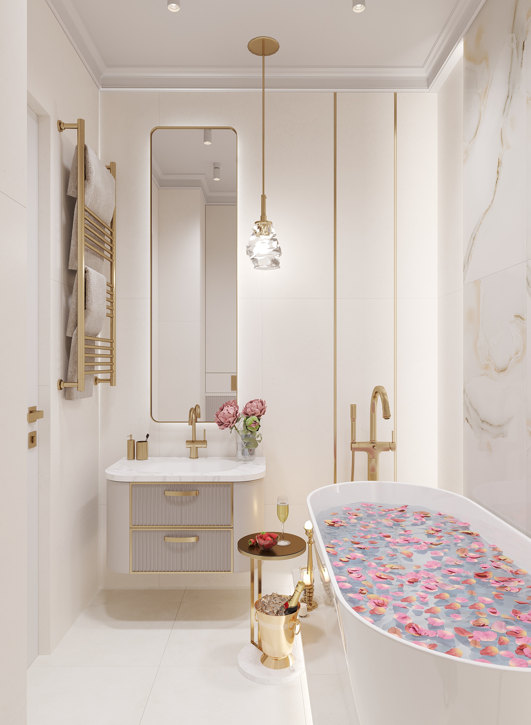 Дизайн-проект квартиры в стиле неоклассика разработан для девушки в ЖК «Маяк» и сочетает в себе атрибуты роскоши и уюта.