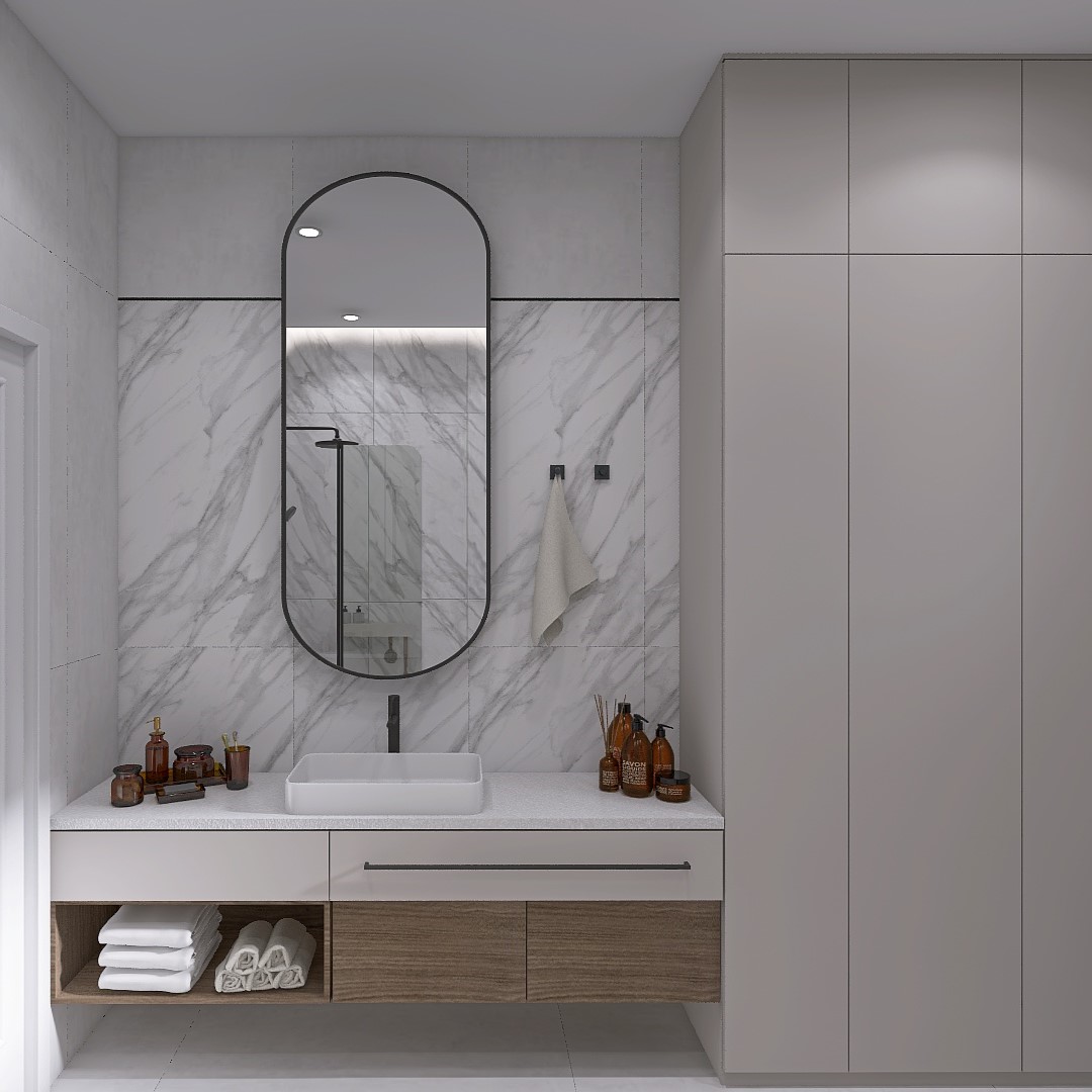 Финальные штрихи - лаконичная сантехника, встроенное освещение и минималистичные аксессуары - завершили образ, воплотив в жизнь концепцию сдержанной роскоши. Санузел получился не просто функциональным помещением, а местом, где можно насладиться красотой натуральных материалов и отдохнуть от суеты.