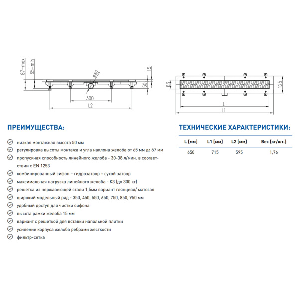 Водоотводящий желоб AlcaPlast APZ101 LOW-650 Водоотводящий желоб AlcaPlast APZ101 LOW-650 Водоотводящий желоб AlcaPlast APZ101 LOW-650