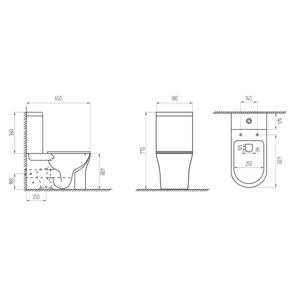 Унитаз-компакт AVS Атом безободковый, темно-серый матовый Унитаз-компакт AVS Атом безободковый, темно-серый матовый