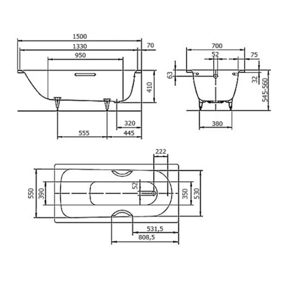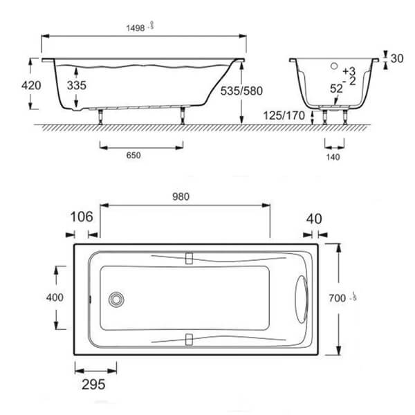 Формы и размеры ванн