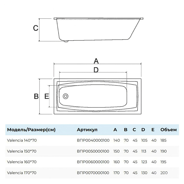 Размеры ванн варьируются от компактных (120-140 см в длину) до больших (более 170 см), что позволяет выбрать модель под любую площадь. В каталоге указаны точные габариты каждой ванны, что упрощает выбор.