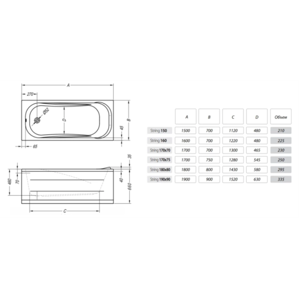 Виды ванн в нашем каталоге