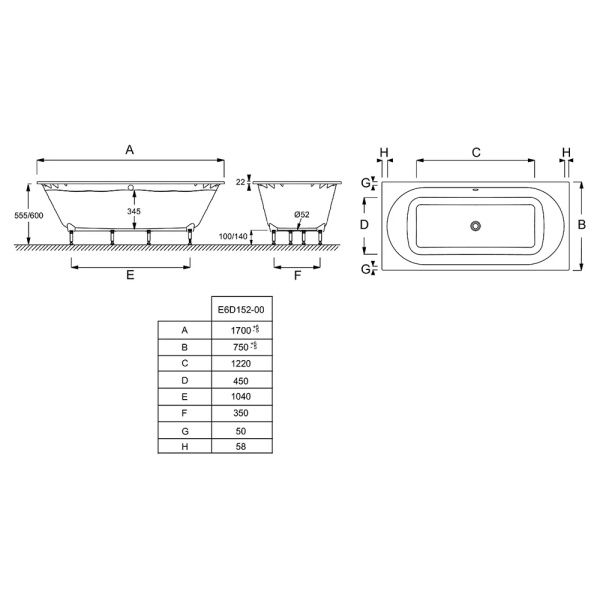 Ванна из искусственного камня 170х75х56 SilkSTONE VARIO PAA VAVARL/00